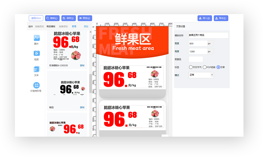 10.1英寸高清LCD屏,支持图文/视频混合播放,价格信息生动呈现